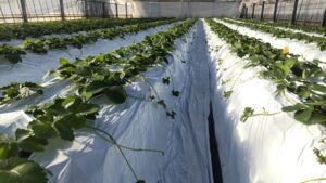 朝の気温も5℃なんて予報出ていたり段々寒くなってきますね。それなのでこのマルチという資材で土を覆います。保温の他にも水分の蒸発を抑えたり雑草も生えてこないようにする役割もありますね。こういう資材もやはり値上がりしてますね。